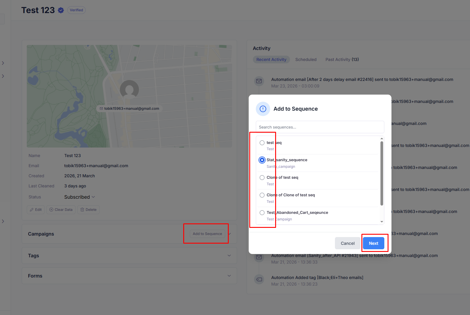 📝 Note: The contact will begin receiving the sequence from the starting event you selected. All subsequent steps in the sequence will be scheduled automatically.